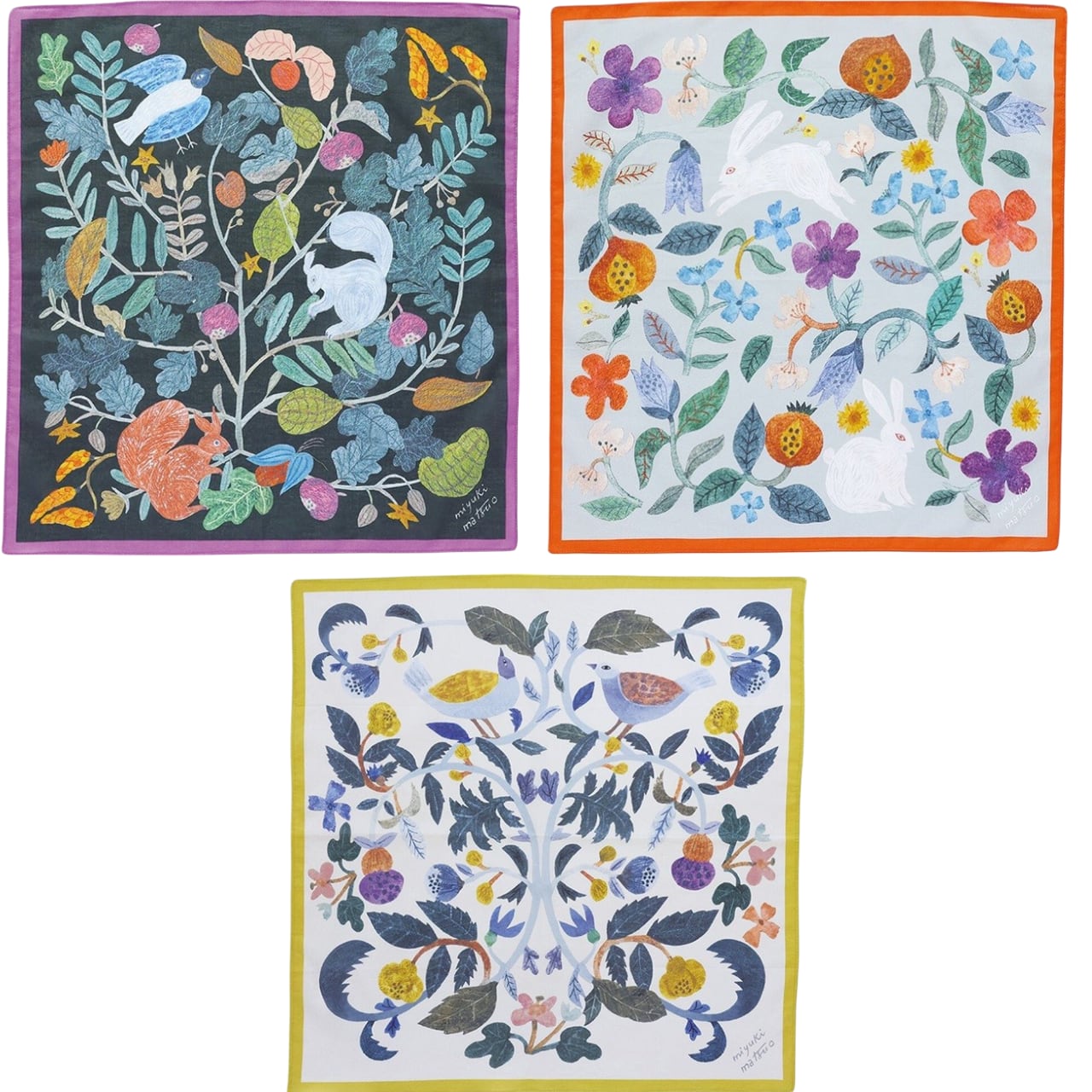 イラストレーター・松尾ミユキさんの世界観を、そのままハンカチに閉じ込めました。