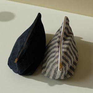 リネン100%のストライプ生地が、やさしい存在感を添えるナチュラルポーチ。