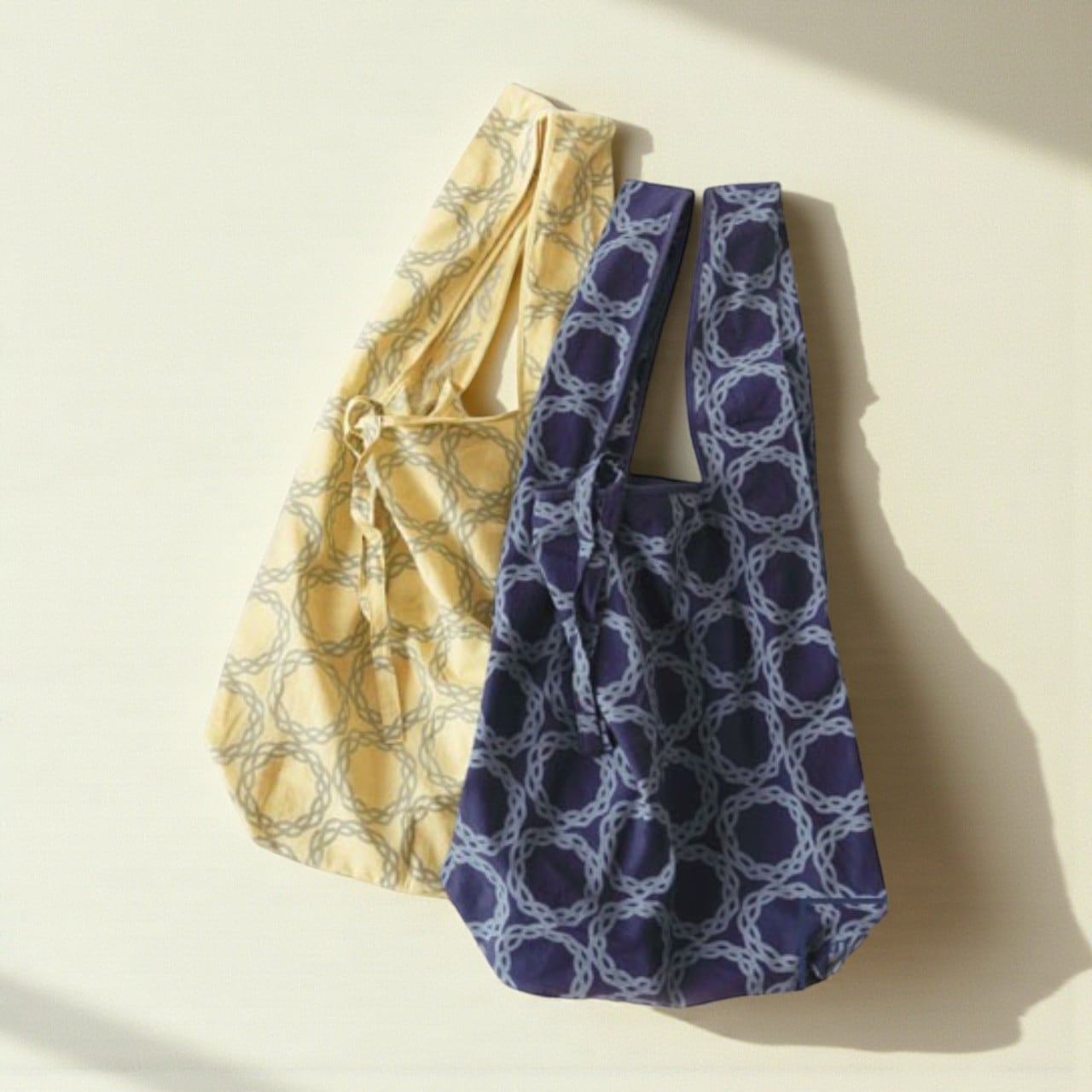 布の軽さと、ツイスト模様の心地よさ。毎日にすっと馴染むマーケットバッグ。